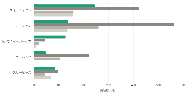 | スリーピースや機能性スーツのバリエーションを見たい | スリーピース85件・ツーパンツ47件と選択肢が豊富 |